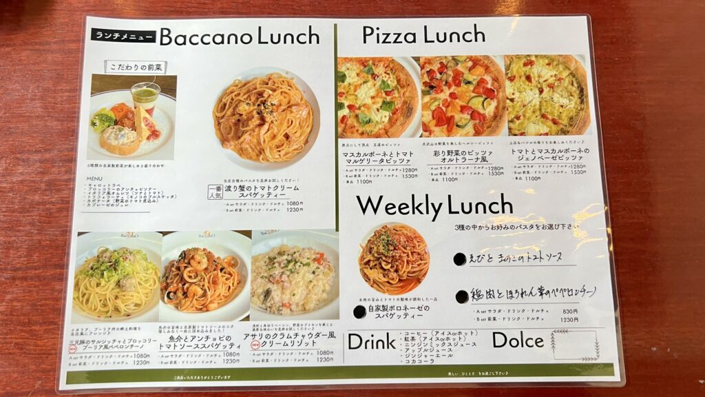 ランチはスパゲッティ、リゾット、ピザが中心。