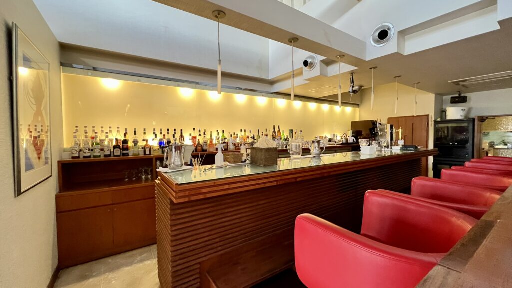 奥にはカウンターがあり、背面に瓶がずらりと並ぶ景色も印象的。