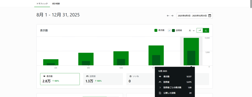 ・訪問者数・PV数はゆるやかに右肩上がり。