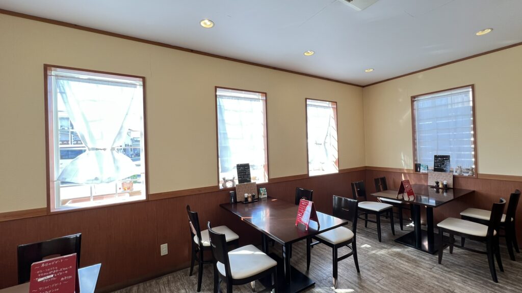 2人掛け・4人掛けのテーブル席が5卓ほどで、ゆったり過ごしやすい印象です。