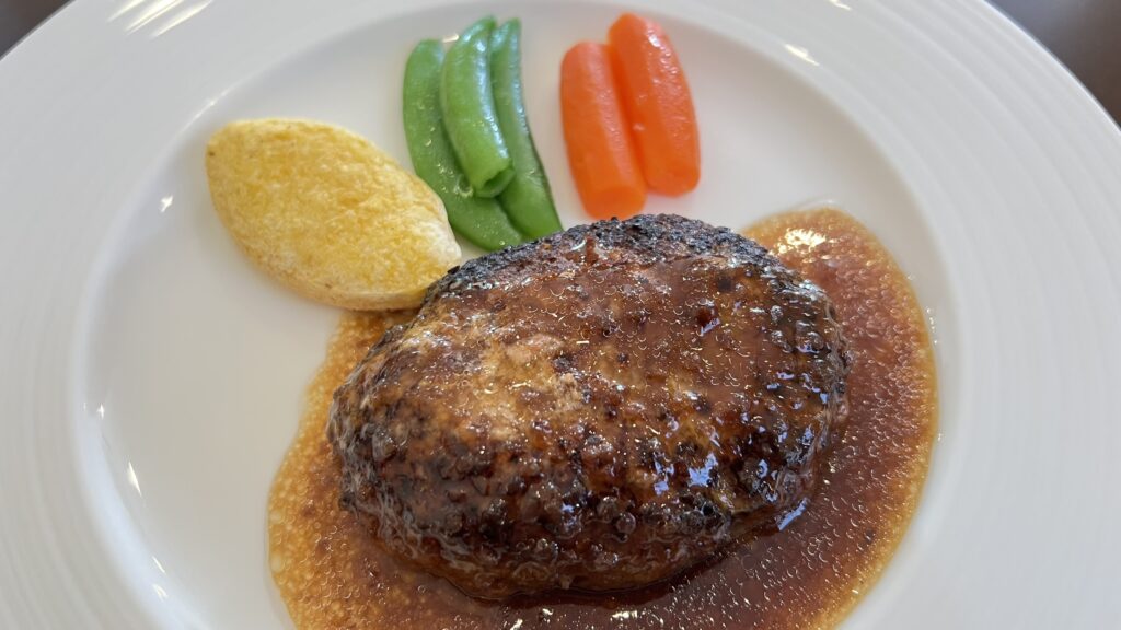 運ばれてきたハンバーグは、表面の香ばしさとツヤのあるソースが食欲をそそる見た目。