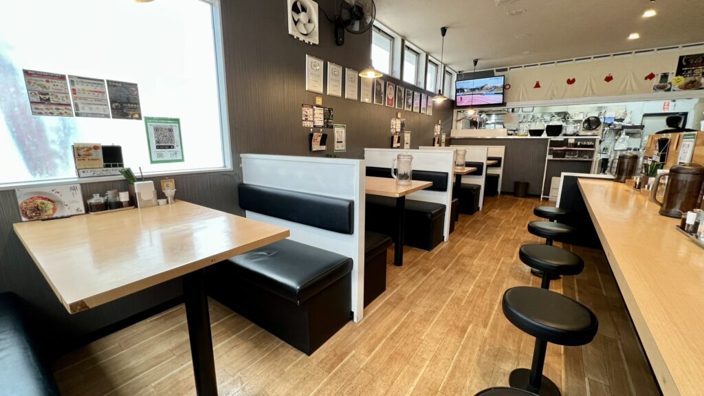 店内は明るい木目調のカウンターとテーブル席が中心のすっきりとした空間。