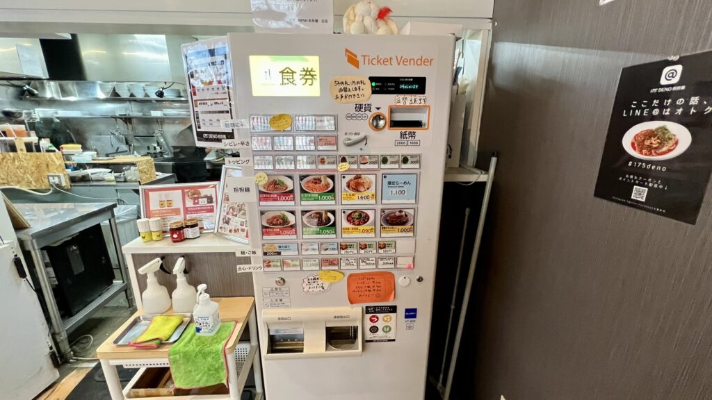 入口右手には券売機が設置されており、先に食券を購入してから席に着くスタイルです。