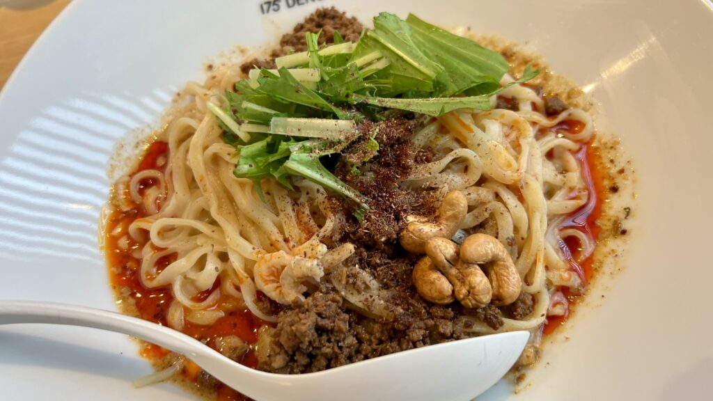 濃厚な白ごまダレのコクに、辣油の辛さと花椒(ファージャオ)のしびれが重なり合い、香り高い味わいが口いっぱいに広がります。