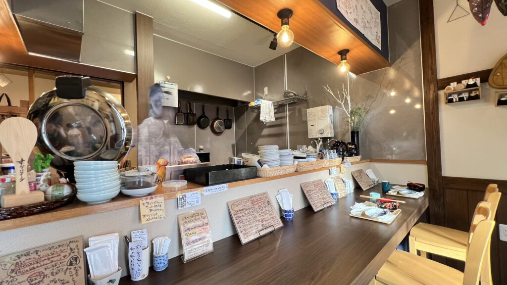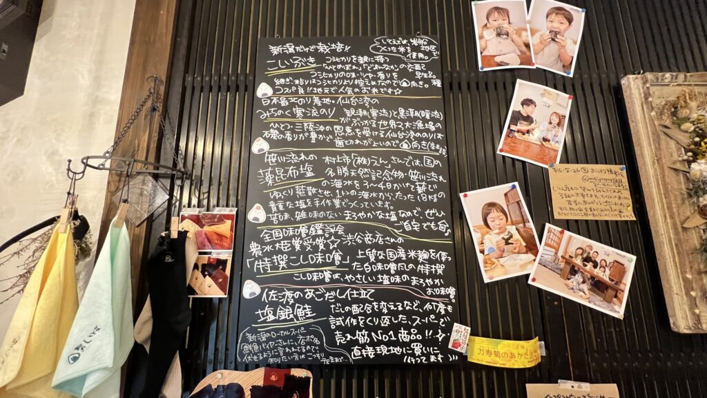 壁の黒板には、使っている具材のことが細かく書き込まれていて、お店の“素材選びへの本気度”が伝わってきました。