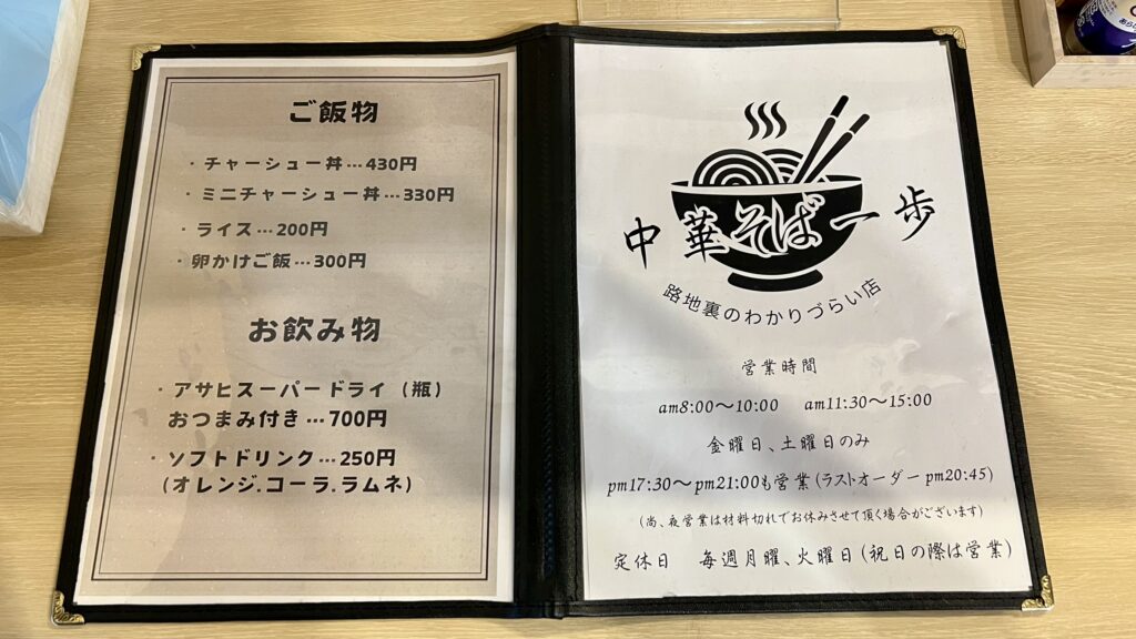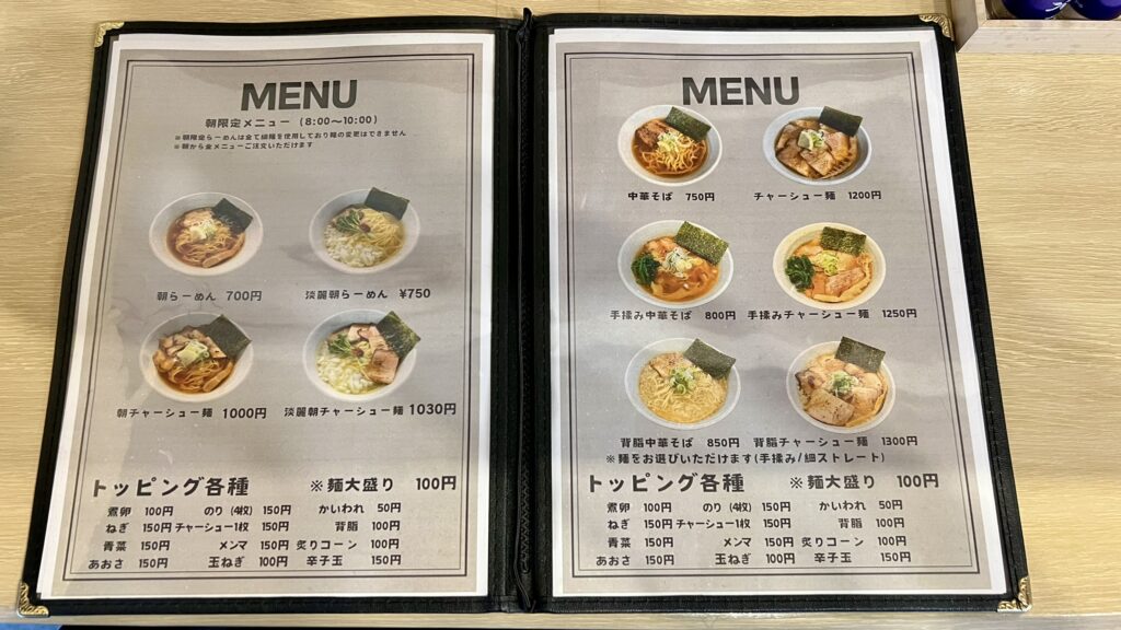 朝らーめんも用意されていて、早い時間帯からラーメンが楽しめるのも特徴。