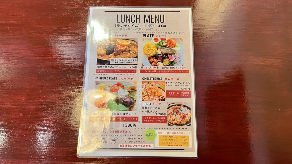 ランチは洋風メニューが5種類ほど用意されており、その日の気分に合わせて選びやすいのが魅力。