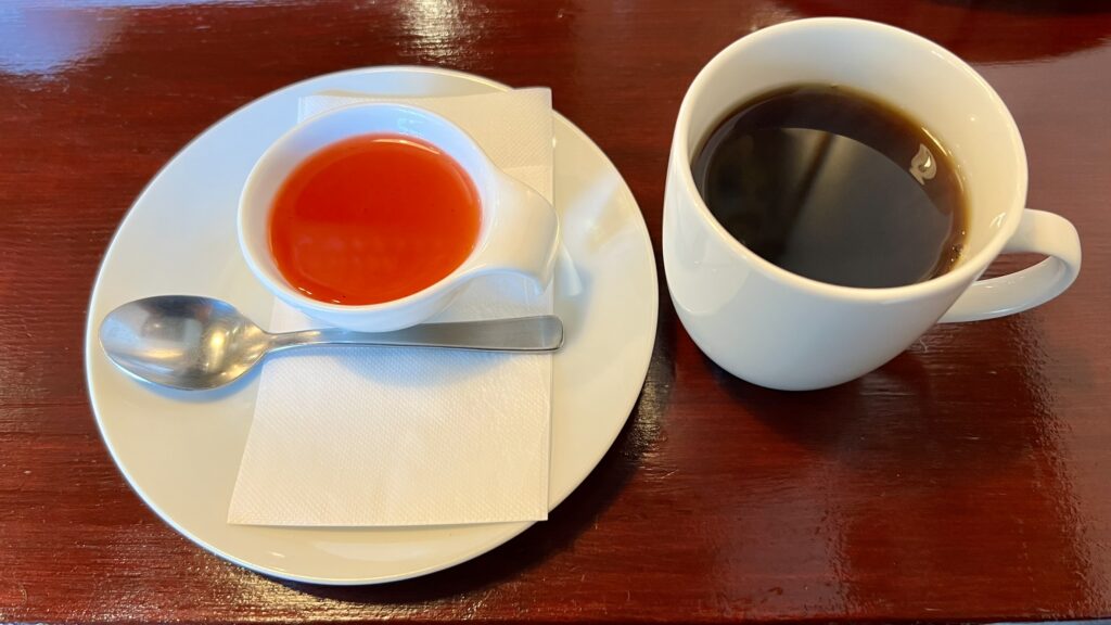 サラダ・スープに加えて、ドリンクやデザートまで付くセット構成で、食後まで含めて満足感のある内容です。