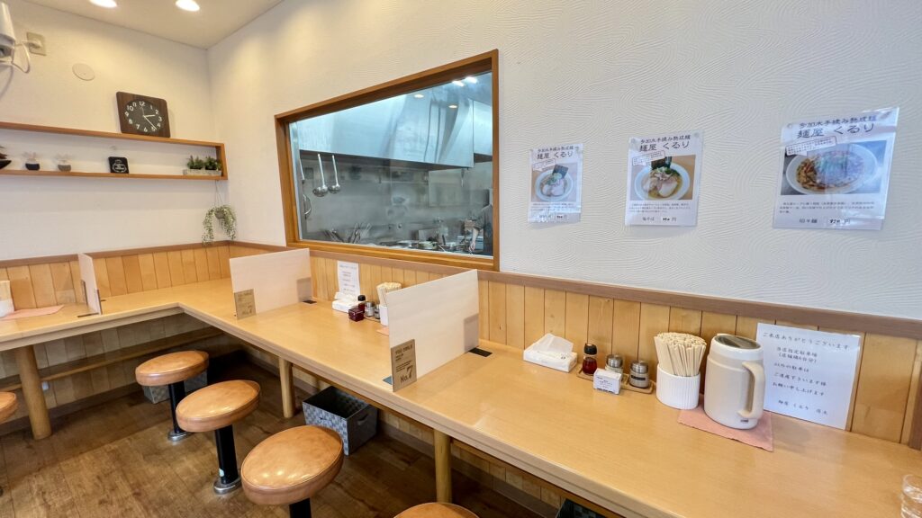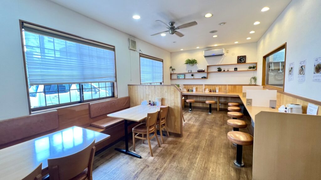 カフェのように落ち着く空間で、素材にこだわった無化調ラーメンが味わえる一軒です。