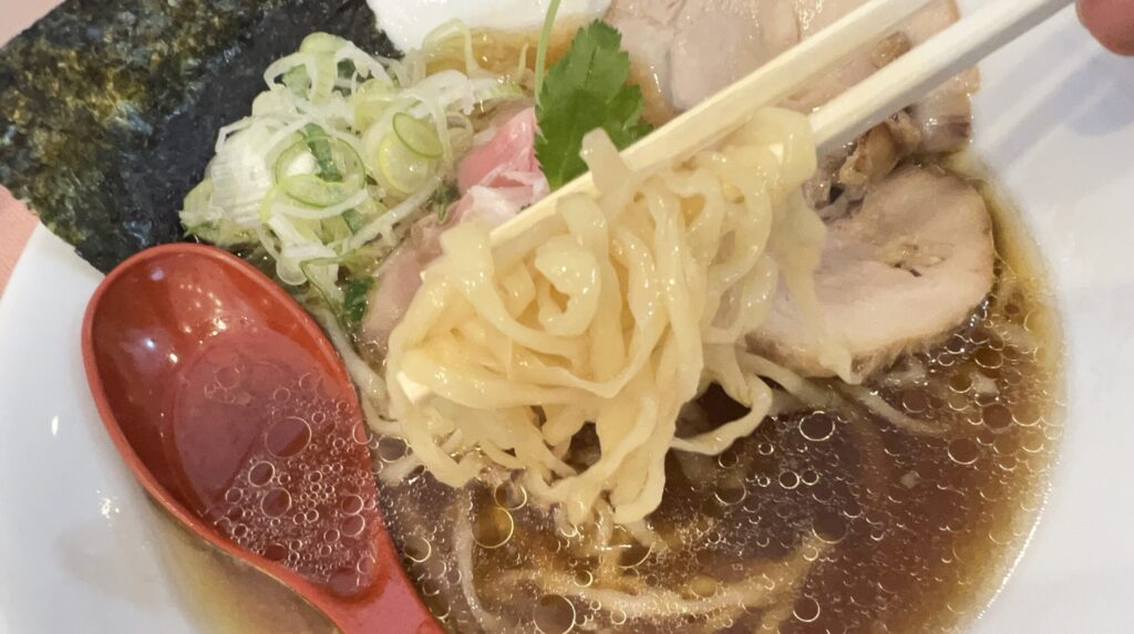 鶏出汁の無化調スープで、醤油の輪郭はきりっとしつつ、後味はやさしめ。