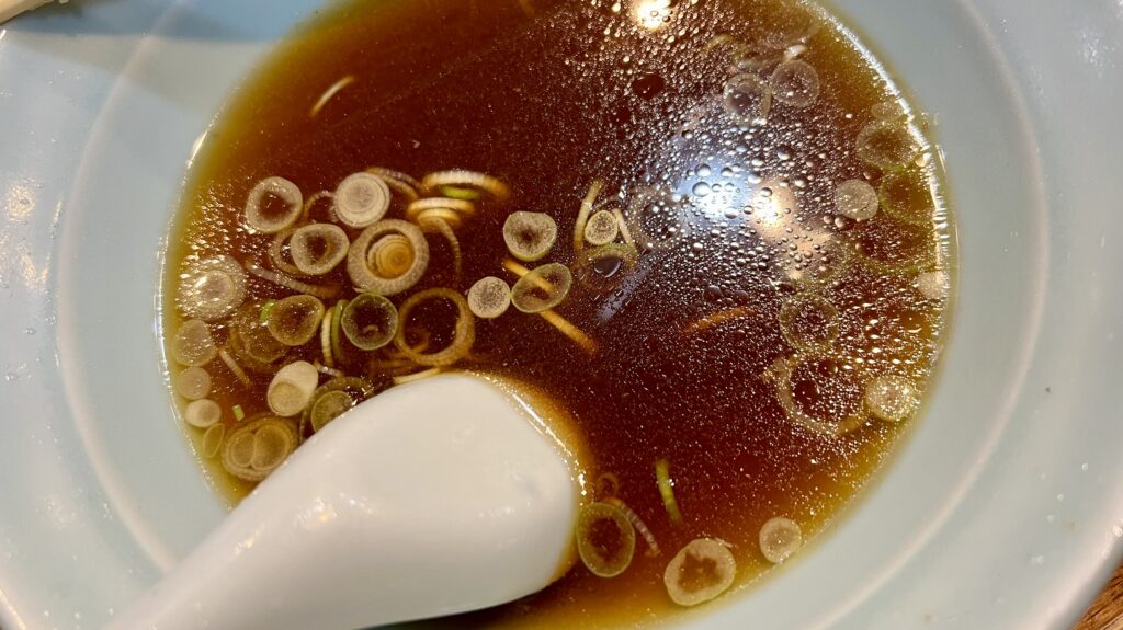 食べ進めるにつれて、底に沈んでいた濃いめの醤油ダレが少しずつ混ざり合い、スープの色も味も徐々に変化。