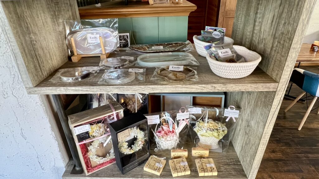 アクセサリーや雑貨などを取り扱っており、カフェタイムのあとにちょっとしたショッピングも楽しめます。