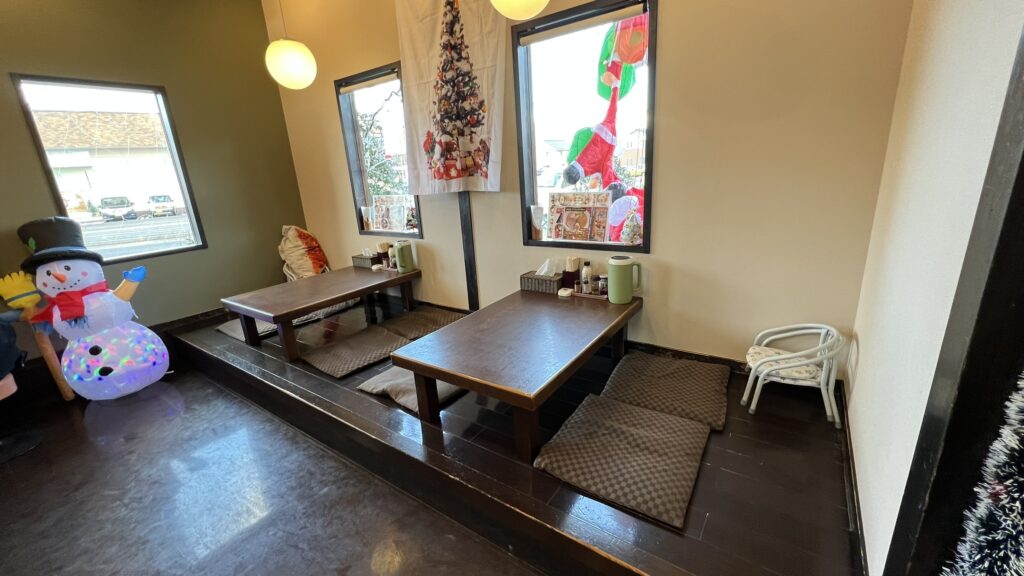 店内には季節の飾りつけや、お子様用のイスも用意されていて、どの世代でもくつろげるアットホームな空間になっています。