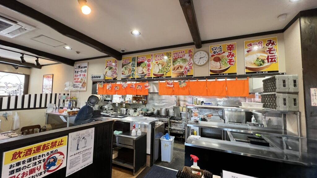 店頭には「ラーメン」や「ギョーザ」ののぼりが並び、車で通りかかってもすぐに分かる存在感があります。