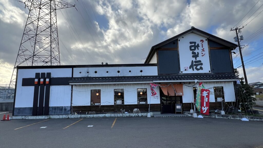 福島市大森、南福島線沿いにある「ラーメンみそ伝 大森店」。