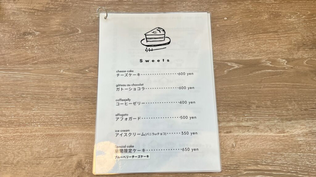 カフェらしくデザートやドリンクメニューもしっかり充実しています。