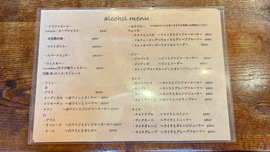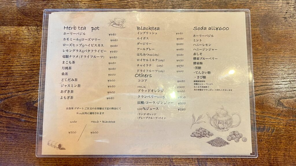 どくだみ茶やホーリーバジル、ハーブティーなどの健康茶から、ビール・ワイン・カクテルまで幅広く揃っています。