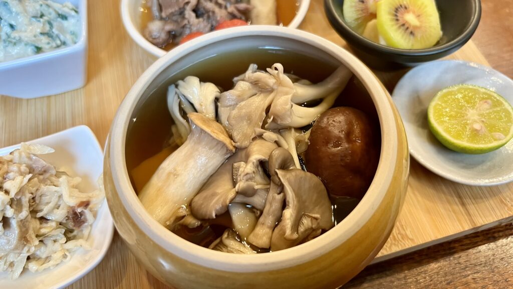 中でも印象的だったのは、きのこをたっぷり使ったやさしい味付けの一皿。