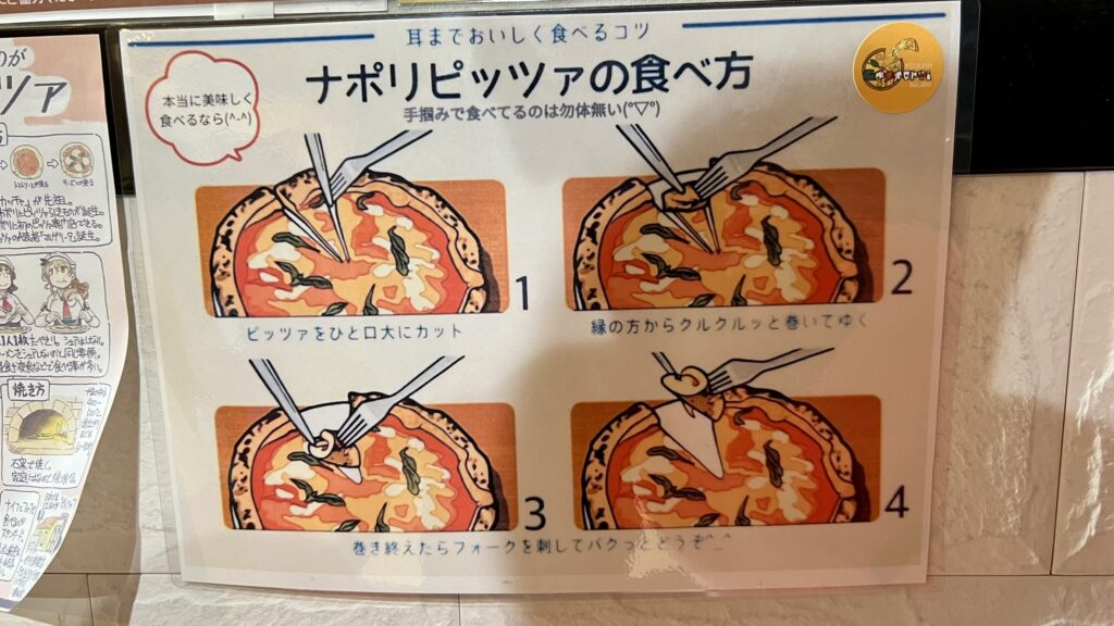壁には「ピザとピッツァの違い」や「耳までおいしく食べるコツ」などが掲示されており、おいしく味わってもらうための店主様のこだわりが感じられました。