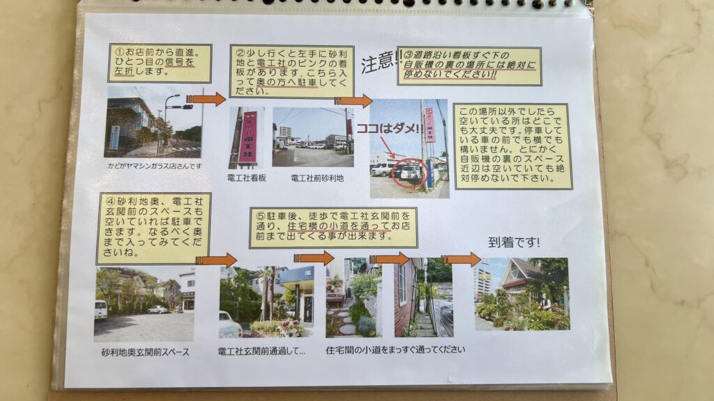 駐車場は店舗近くに用意されているので、車でのアクセスも安心です。