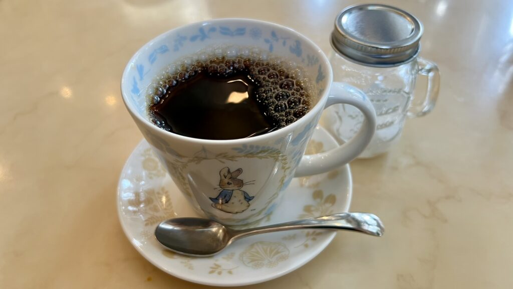 締めくくりには、可愛らしいうさぎ柄のカップに注がれたブレンドコーヒー。