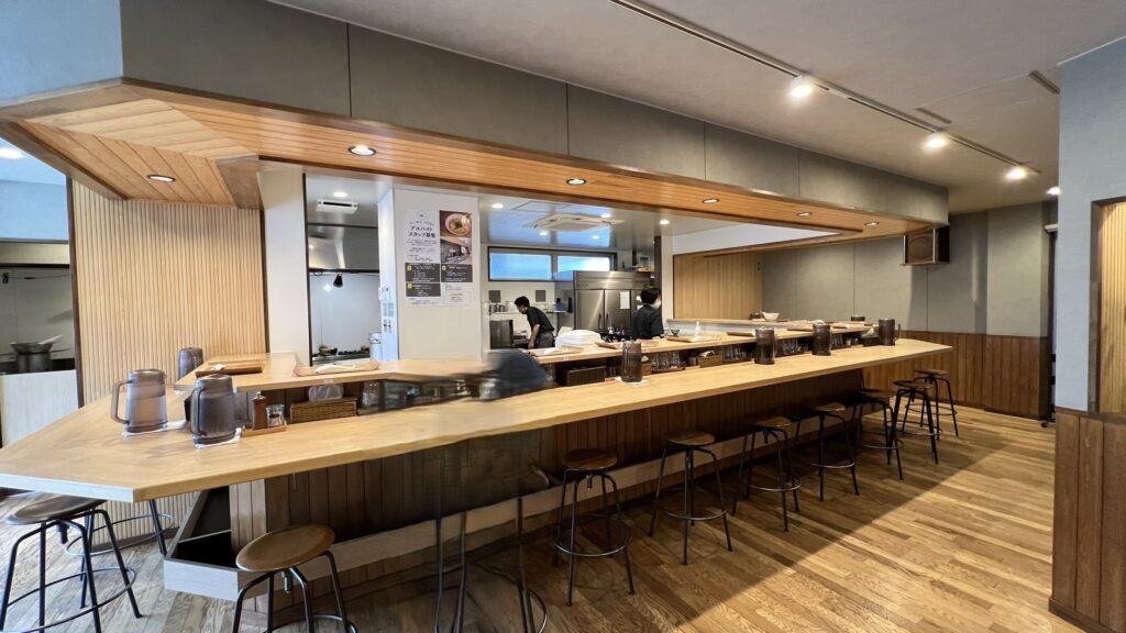 一人でさっと食べたいときはカウンター、ゆっくり話しながら味わいたいときはテーブル席と、シーンに合わせて利用しやすい空間です。
