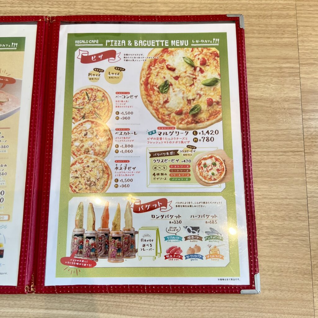 洋風メニューが中心で、パスタやピザは種類も豊富に揃っています。