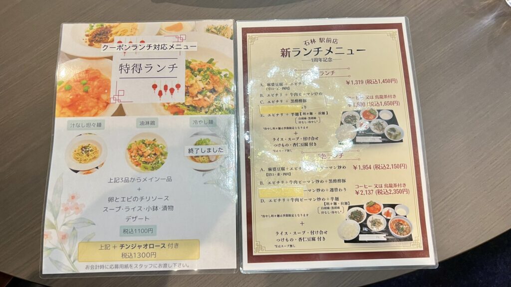 お盆いっぱいに並んだ料理を少しずつ味わいながら、駅前でゆっくり中華ランチを楽しめる、満足感のあるセットでした。