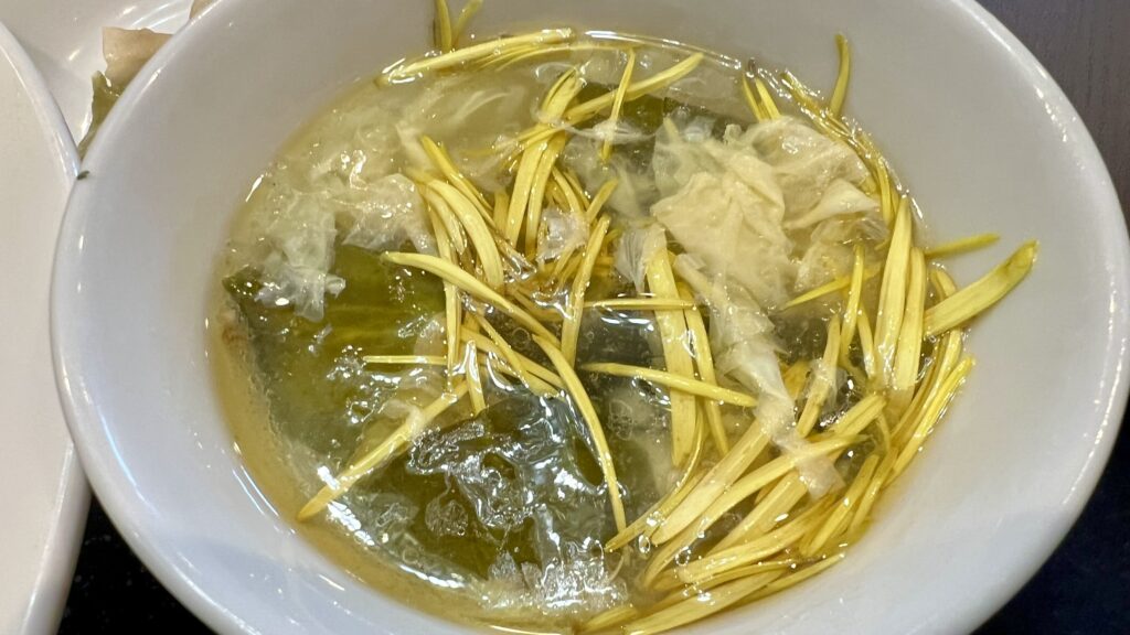 中華スープは、透明感のあるスープに具材がふわりと浮かび、ほどよい塩味で口当たりも軽やか。