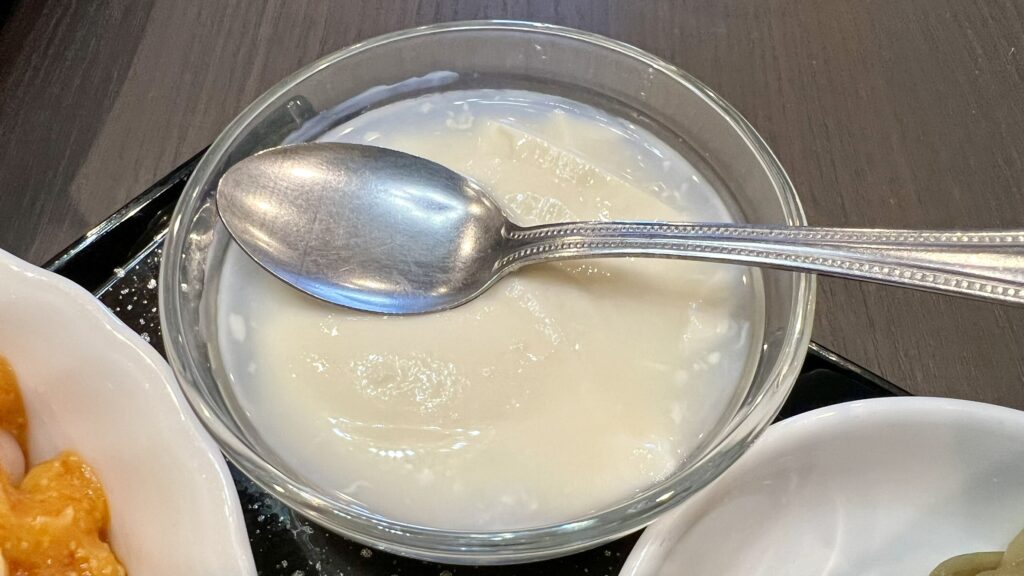 食後にはなめらかな杏仁豆腐が控えており、やさしい甘さでランチの締めくくりにぴったりでした。