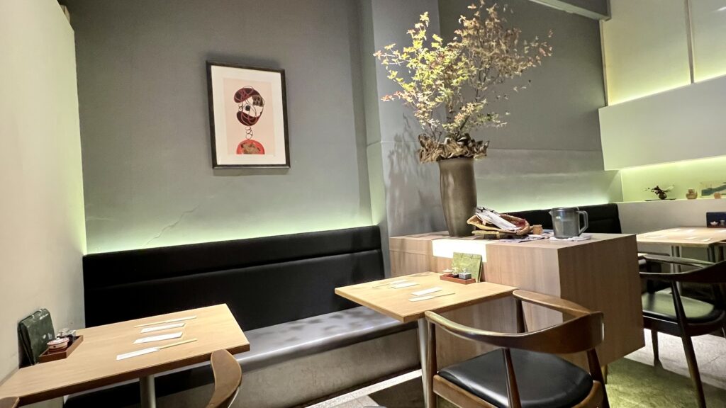 店内に入ると、木の温もりと現代的なデザインが融合した上質な空間が広がります。