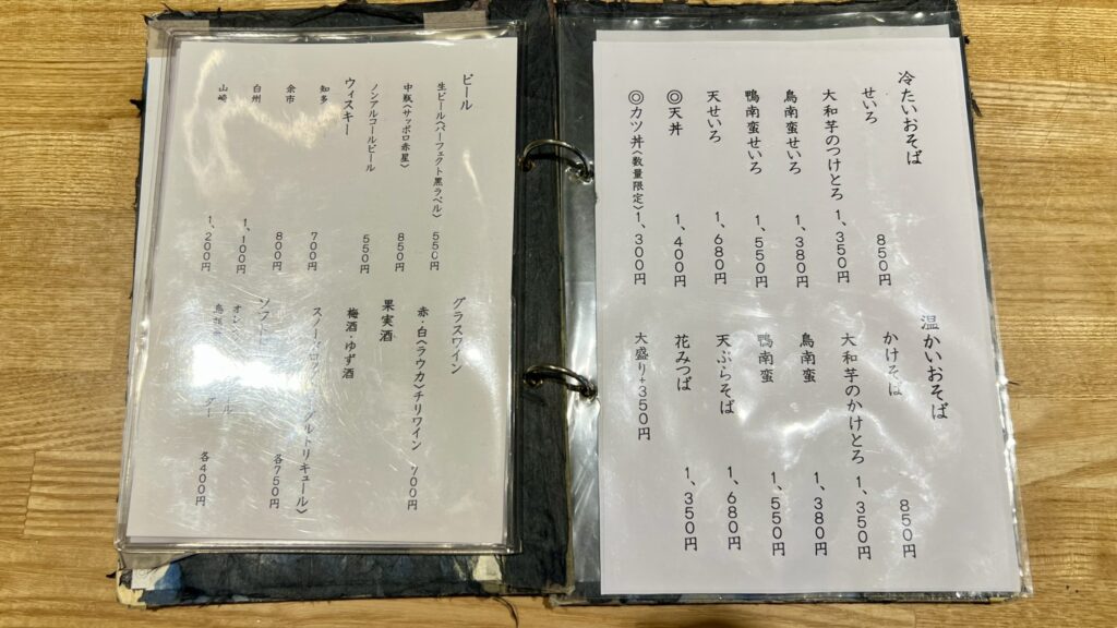 そば居酒屋としても営業しているため、焼き鳥や天ぷらなどの一品料理、さらに日本酒・焼酎・ワインまで幅広く揃っています。