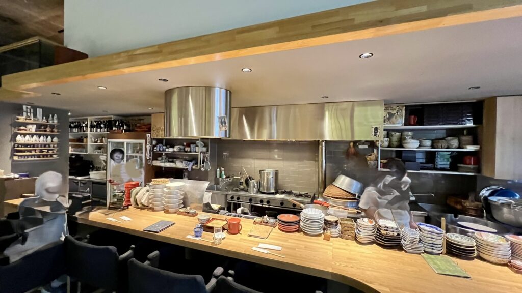 カウンター席では、料理人が一品一品を仕上げていく様子を間近で見ることができ、臨場感たっぷり。