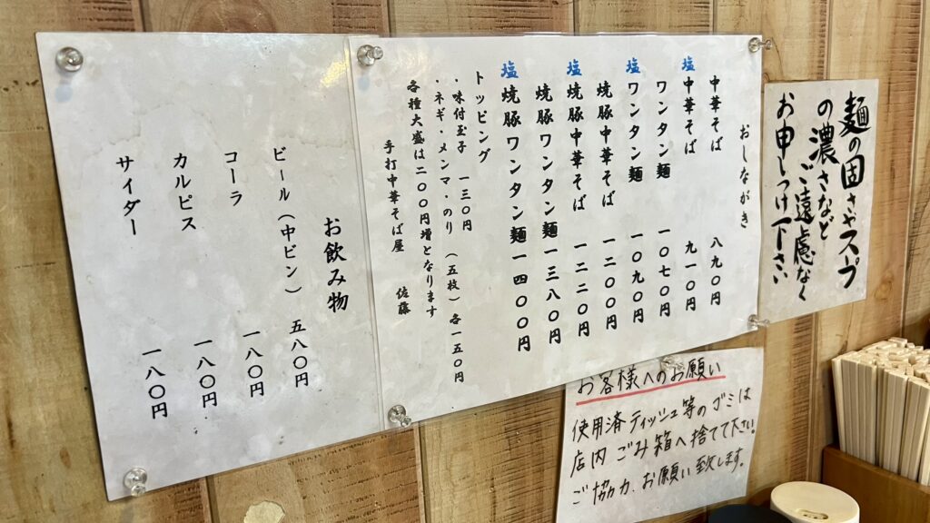 店内の貼り紙には「麺の固さやスープの濃さなどご遠慮なくお申し付けください」との案内もあり、細かな好みに応えてくれるのもうれしいところ。