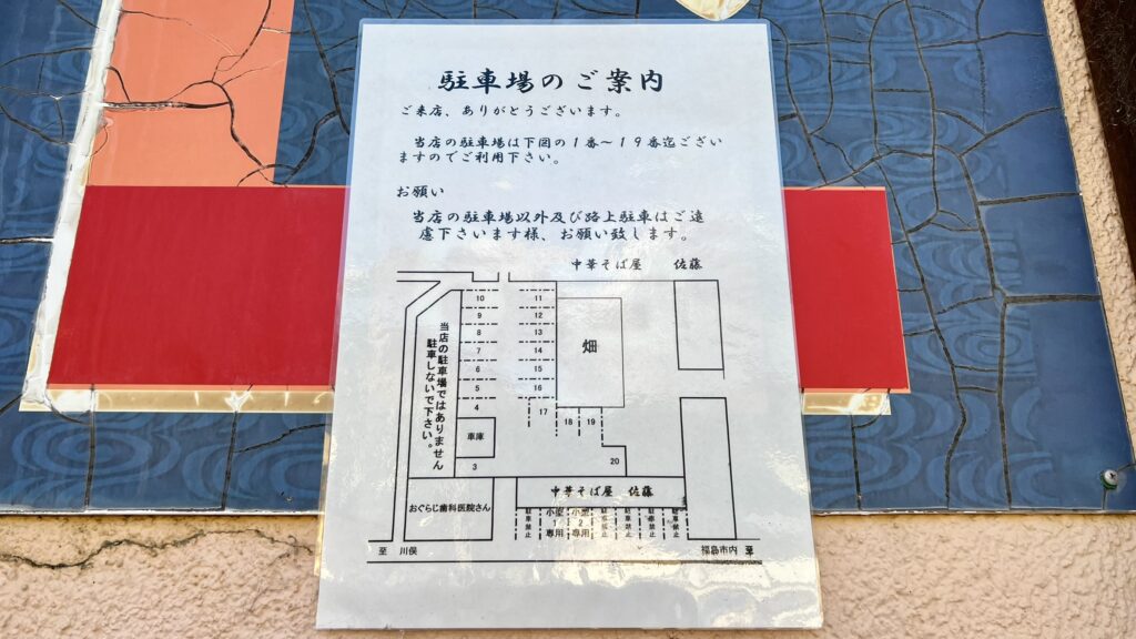 壁には区画図が掲示されているので、車で訪れる際はそちらを確認してから駐車すると安心です。