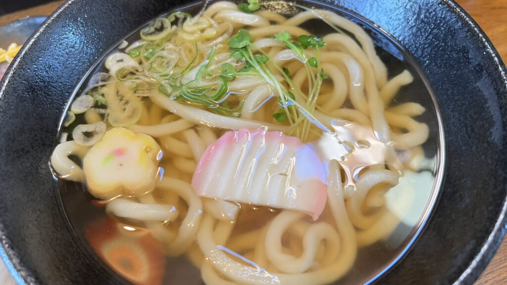 うどんは、すっきりと澄んだお出汁の香りが心地よい一杯。