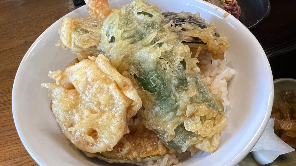 軽く揚がった衣に甘めのタレがしっかり染み込み、ご飯と一緒に頬張ると、タレの風味と天ぷらの香ばしさがバランスよく広がります。