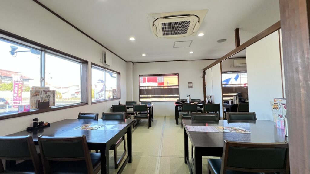カウンター席と畳敷きのテーブル席があり、ひとりでもグループでも使いやすい造り。