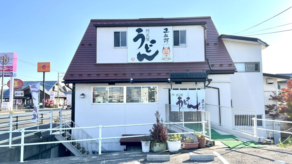福島市本内、国道4号線沿いにたたずむ「阿武隈うどん 正伍郎」。