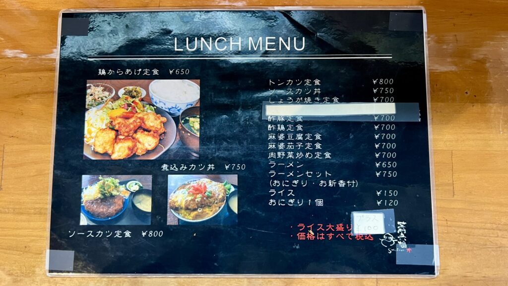 メニューは定食とラーメンが中心で、価格帯は650円〜800円と驚くほど良心的。